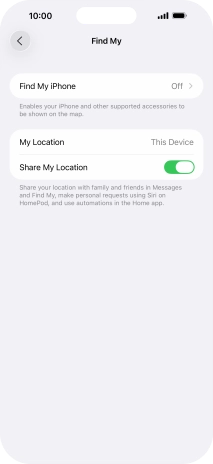 Select settings for Find My iPhone on your Apple iPhone 17 Pro Max iOS 26