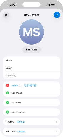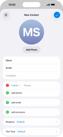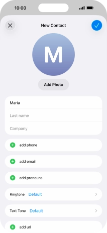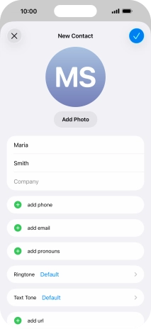 Follow the instructions on the screen to add more information such as an email address and a personal ring tone.