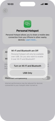 If Wi-Fi is turned on, press Wi-Fi and USB Only.