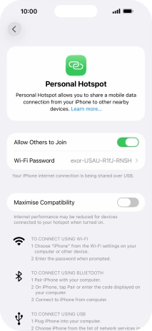 Find the list of available Wi-Fi networks and select the personal hotspot you've just set up.
