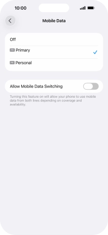 Press the indicator next to "Allow Mobile Data Switching" to turn the function on or off.