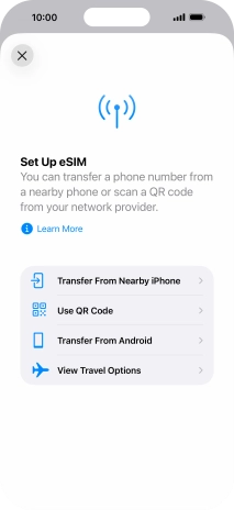 Place the QR code you've received inside the phone camera frame to scan the code. Your eSIM is transferred to your new phone over the internet.