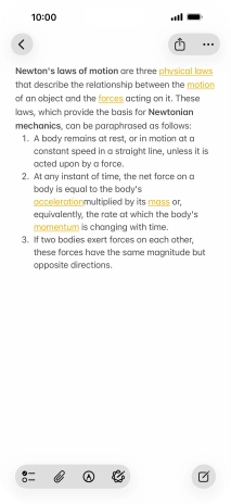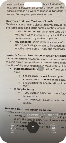 To use visual intelligence on a text, take a picture of the text, press the required setting and follow the instructions on the screen to use the function.