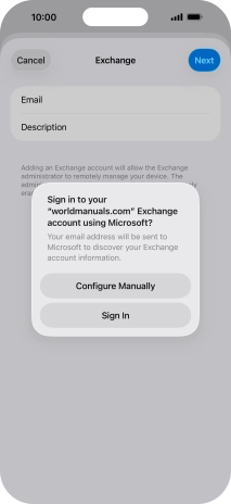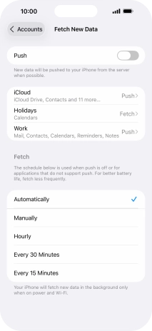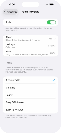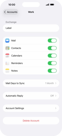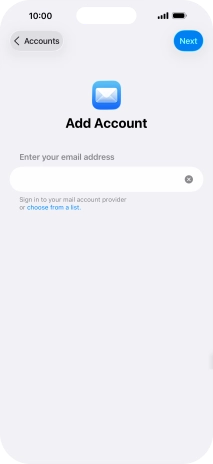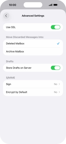Press the required email account and follow the instructions on the screen to select settings for the specific account.