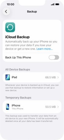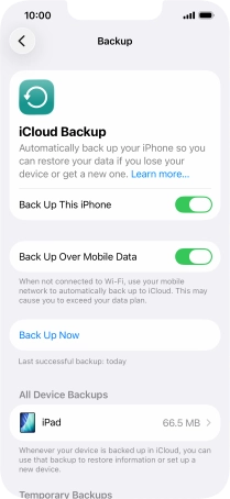 Press iCloud Backup.