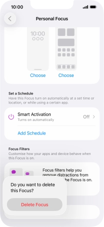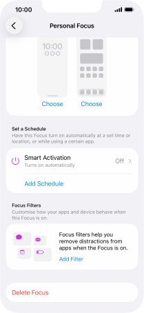 Press the required setting below "Set a Schedule" and follow the instructions on the screen to set up automatic activation of the selected focus mode.