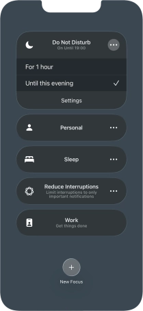 You can set your phone to activate the selected focus mode for a specified period of time, at a specific location or while using a specific app.