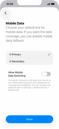 Press the indicator next to "Allow Mobile Data Switching" to turn the function on or off.