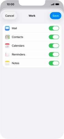 Press the indicators next to the required data types to turn synchronisation of each data type on or off.
