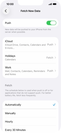 9. Select setting for retrieval of new email messages