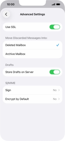 Press the required email account and follow the instructions on the screen to select settings for the specific account.