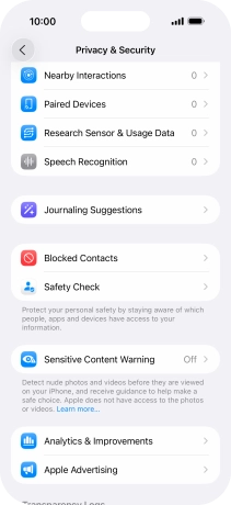 Press the indicator next to "Sensitive Content Warning" to turn the function on or off.