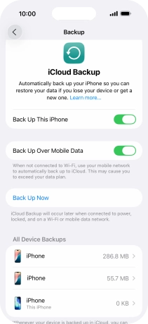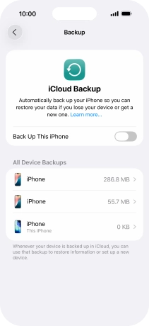 Press the indicator next to "Back Up This iPhone" to turn on the function.