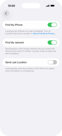 Press the indicator next to "Send Last Location" to turn the function on or off.