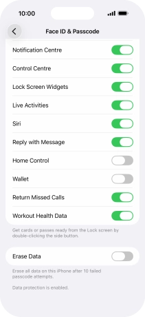 Press the indicator next to "Erase Data" to turn the function on or off.
