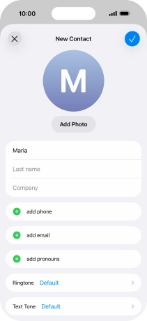 Follow the instructions on the screen to add more information such as an email address and a personal ring tone.