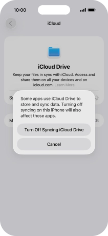 If you turn off the function, press Turn Off Syncing iCloud Drive.