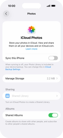 Press the indicator next to "Sync this iPhone" to turn the function on or off.