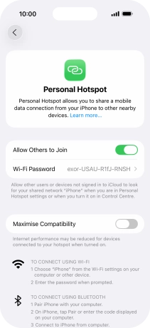 Find the list of available Wi-Fi networks and select the personal hotspot you've just set up.