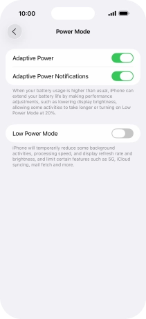 When Adaptive Power is turned on, Apple Intelligence is used to detect when your phone is using more power than usual, and automatically makes small adjustments to things like brightness and background apps so that your phone holds its charge for longer. To use the function, you need to turn on Apple Intelligence.