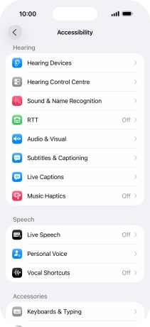 You can select different spoken assistance settings, e.g. Live Speech and Personal Voice, which make it easier for people with speech difficulties to communicate with others e.g. during voice or video calls.