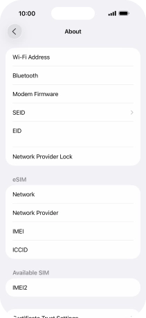 The EID number is your phone's unique eSIM identification number which is used when contacting the operator, e.g. during eSIM activation.