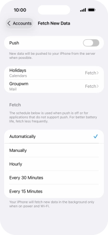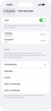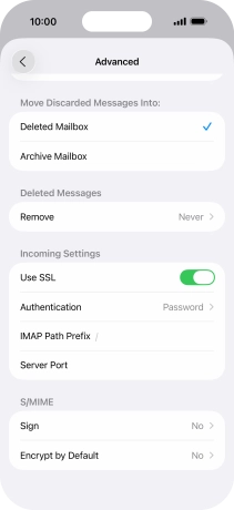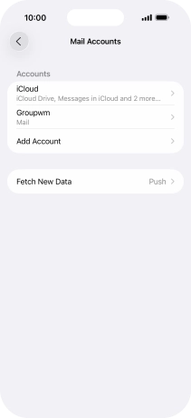 Press the required email account and follow the instructions on the screen to select settings for the specific account.