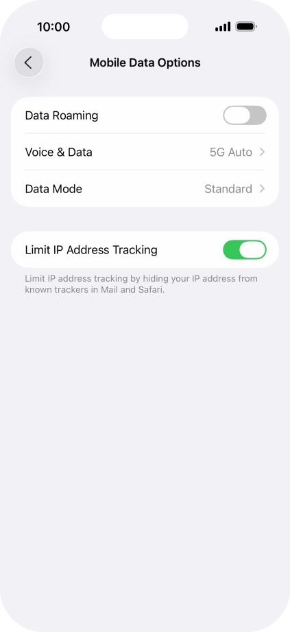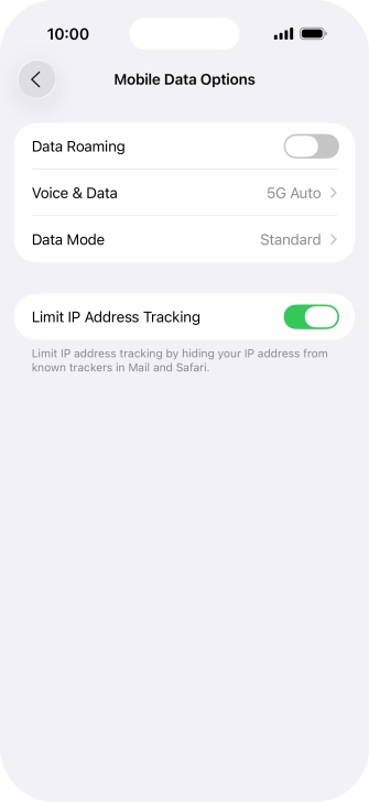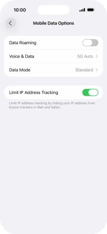 Press the indicator next to "Data Roaming" to turn the function on or off.