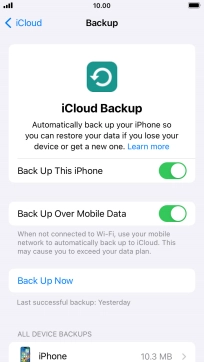 Press the indicator next to "Back Up Over Mobile Data" to turn the function on or off.