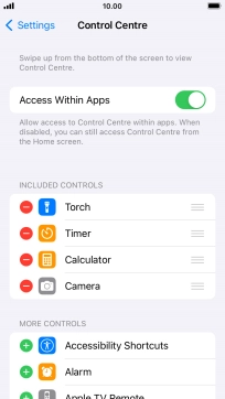 Press the add icon next to the required function to add it to Control Centre.