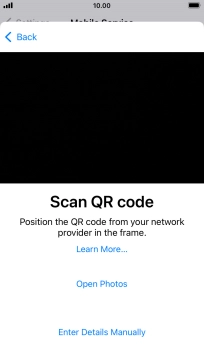 Place the QR code you've received inside the phone camera frame to scan the code. If you’ve deleted your eSIM, you can re-add it using your existing QR code. If you’re having problems, see our FAQ.