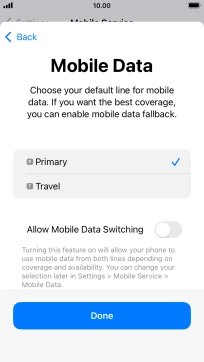 Press the indicator next to "Allow Mobile Data Switching" to turn the function on or off.