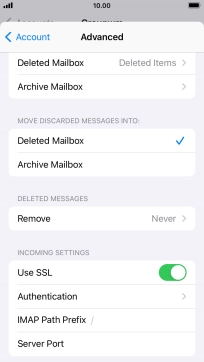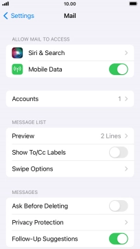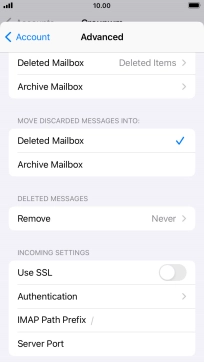 Press the required email account and follow the instructions on the screen to select settings for the specific account.