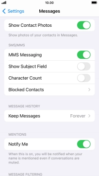 Press the indicator next to "MMS Messaging" to turn on the function.