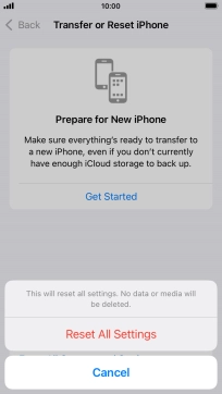 Press Reset All Settings. Wait a moment while the factory default settings are restored. Follow the instructions on the screen to set up your phone and prepare it for use.