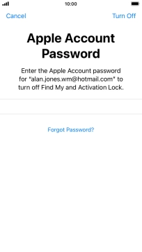 Key in the password for your Apple ID and press Turn Off. Wait a moment while the factory default settings are restored. Follow the instructions on the screen to set up your phone and prepare it for use.