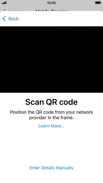 Place the QR code you've received inside the phone camera frame to scan the code. If you’ve deleted your eSIM, you can re-add it using your existing QR code. If you’re having problems, see our FAQ.