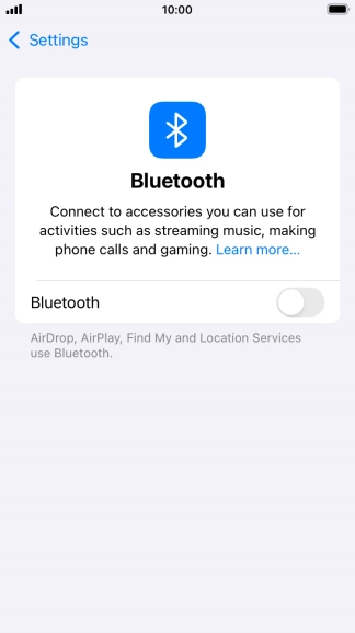 Press the indicator next to "Bluetooth" to turn the function on or off.