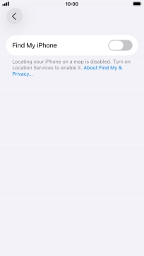 Press the indicator next to "Find My iPhone" to turn on the function.