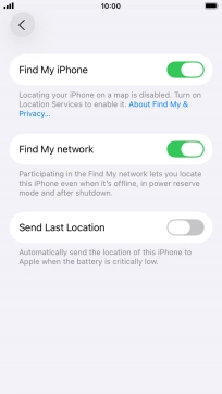 Press the indicator next to "Send Last Location" to turn the function on or off.