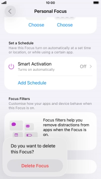 Press the required setting below "Set a Schedule" and follow the instructions on the screen to set up automatic activation of the selected focus mode.