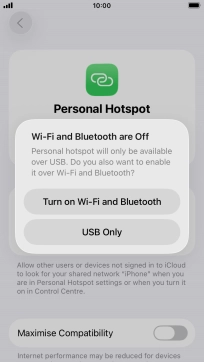 If Wi-Fi is turned on, press Wi-Fi and USB Only.