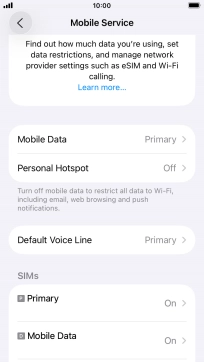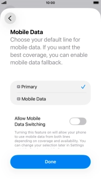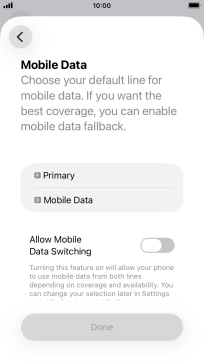 Press the indicator next to "Allow Mobile Data Switching" to turn the function on or off.