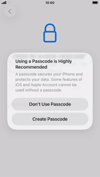 Follow the instructions on the screen to turn on use of phone lock code or press Don't Use Passcode.
