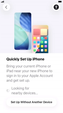 Follow the instructions on the screen to transfer content from another device running iOS 11 or later or press Set Up Without Another Device.