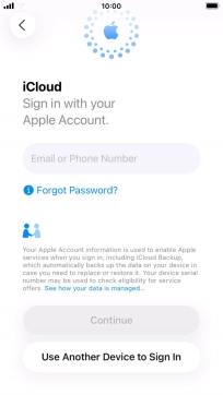 When this screen is displayed, your phone is ready to restore content from an iCloud backup.