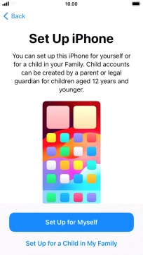 If your phone will be used by a child below the age of 13, follow the instructions on the screen to set up an Apple ID for the child.
