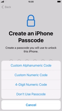 Follow the instructions on the screen to turn on use of phone lock code or press Don't Use Passcode.