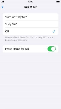 Press the required setting to turn the function on or off. If you turn on the function, you need to follow the instructions on the screen to set up Siri to recognise your voice.