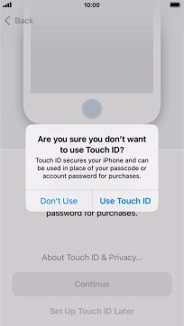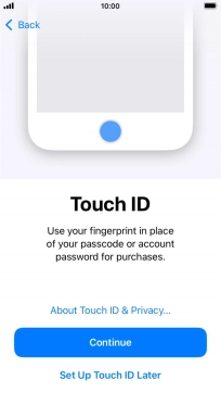 Follow the instructions on the screen to turn on use of Touch ID or press Set Up Touch ID Later.